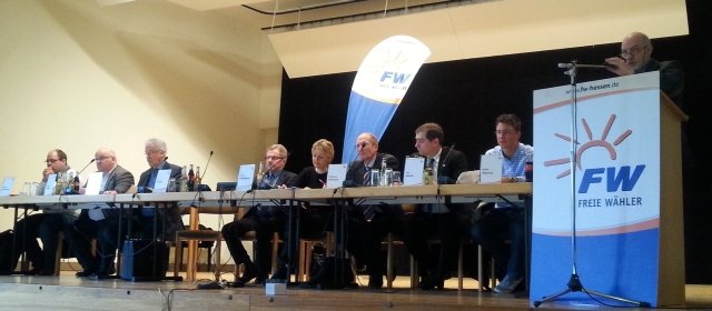 Die Landesdelegiertenkonferenz der Freien Wähler Hessen am 21. Februar 2015 in Schöffengrund (Lahn-Dill-Kreis) stellt für den Landesverband eine personelle, organisatorische und inhaltliche Zäsur dar. Nachdem der bisherige Landesvorsitzende Walter Öhlenschläger nicht mehr zur Wiederwahl angetreten war und auch der Großteil des Vorstandes aus beruflichen oder privaten Gründen für eine neuerliche Amtszeit nicht zur Verfügung stand, hatte Rudolf Schulz, bislang stellvertretender Landesvorsitzender und Kreisvorsitzender Offenbach-Land, seinen Hut in den Ring geworfen. In einer kämpferischen Rede entwarf er ein neues, modernes Bild des Landesverbandes der Freien Wähler als starker Partner und Dienstleister der Orts- und Kreisverbände. Mit seinem Aufruf, „die Verbandsstrukturen gemeinsam neu aufzubauen und Inhalte zu erarbeiten, die jeder mittragen kann“, überzeugte Schulz die Delegierten, die ihn mit großer Mehrheit zu ihrem Landesvorsitzenden wählten. Eine deutliche Verjüngung und die kommunalpolitische Expertise der Kandidaten überzeugten die Abgeordneten der Kreisverbände davon, auch den fünf Bewerbern für den stellvertretenden Landesvorsitz, Engin Eroglu vom Kreisverband Schwalm-Eder/ Ortsverband Schwalmstadt, Friedel Kopp vom Kreisverband Vogelsberg, Laura Macho vom Kreisverband Wetterau/Ortsverband Bad Vilbel, Uwe Steuber vom Kreisverband Waldeck-Frankenberg/Ortsverband Lichtenfels und Ronald Berg vom Kreisverband Wetterau/Ortsverband Münzenberg, ihr Vertrauen entgegenzubringen. Zum neuen Landesschatzmeister wurde auf der Landesdelegiertenkonferenz Thomas Kandziorowski vom Kreisverband Main-Taunus/Ortsverband Liederbach gewählt, zum Geschäftsführer Klaus Sommer vom Kreisverband Gießen/Ortsverband Pohlheim. „Wir haben keine Zeit, uns nur mit uns zu beschäftigen, wir müssen nach vorne blicken“, gab Rudolf Schulz auf der Delegiertenkonferenz die Losung aus.